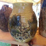 Sharon Turner Camp is a life-long resident of Bartow County Georgia, and a graduate of Reinhardt College, and West Georgia College. She has been a potter for almost forty years and her work has been influenced by Bill Gordy, Sue Jackson, Curtis Chapman, Carmon Culvert, as well as the history and work of folk potters throughout the South. She prefers to work with stoneware clays, mixes her own glazes, and fires all of her work at cone 10 for maximum durability.